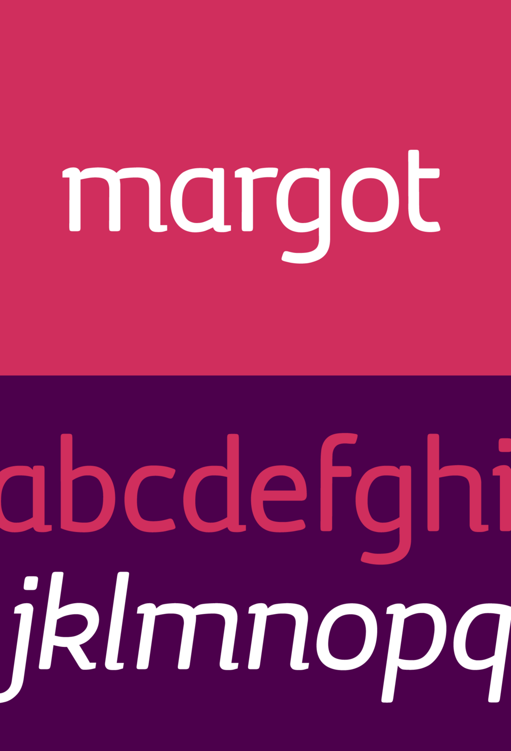 Margot is an adoring typefamily designed and optimized for its use in large sizes. Margot is vibrant, cheerful and perfectly suited for a great variety of typographical purposes